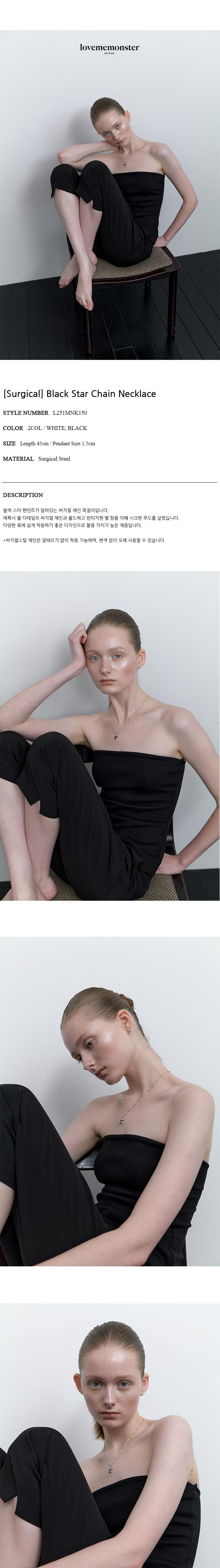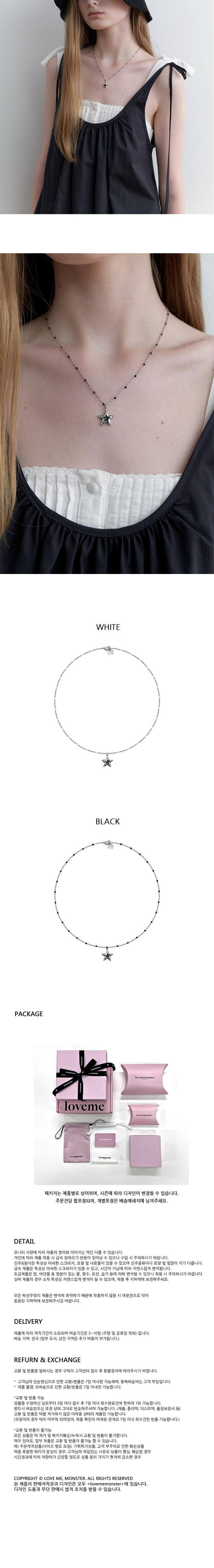 블랙 스타 팬던트가 달려있는 써지컬 체인 목걸이입니다. 에폭시 볼 디테일의 써지컬 체인과 볼드하고 빈티지한 별 참을 더해 시크한 무드를 살렸습니다. 다양한 룩에 쉽게 착용하기 좋은 디자인으로 활용 가치가 높은 제품입니다. 화이트 에폭 체인, 블랙 에폭 체인 총 2가지 컬러가 있습니다. *써지컬스틸 체인은 알레르기 없이 착용 가능하며, 변색 없이 오래 사용할 수 있습니다.