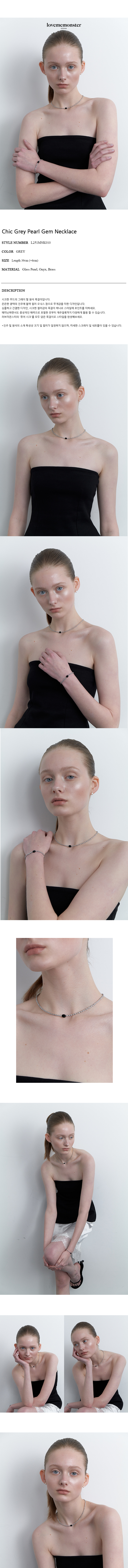 시크한 무드의 그레이 펄 원석 목걸이입니다. 은은한 광택의 진주에 블랙 컬러 오닉스 참으로 무게감을 더한 디자인입니다. 심플하고 간결한 디자인, 시크한 컬러감의 목걸이 하나로 스타일에 포인트를 더하세요. 페미닌하면서도 중성적인 매력으로 포멀한 옷부터 캐주얼룩까지 다양하게 활용 할 수 있습니다. 러브미몬스터의 '퓨어 시크'를 모두 담은 목걸이로 스타일을 완성해보세요. *진주 및 원석의 소재 특성상 크기 및 컬러가 일정하지 않으며, 미세한 스크래치 및 내포물이 있을 수 있습니다.