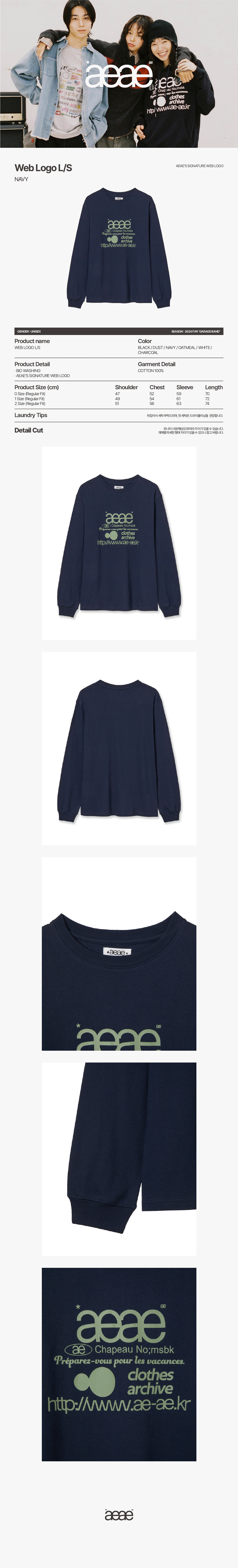 에이이에이이 웹 로고 롱슬리브 네이비