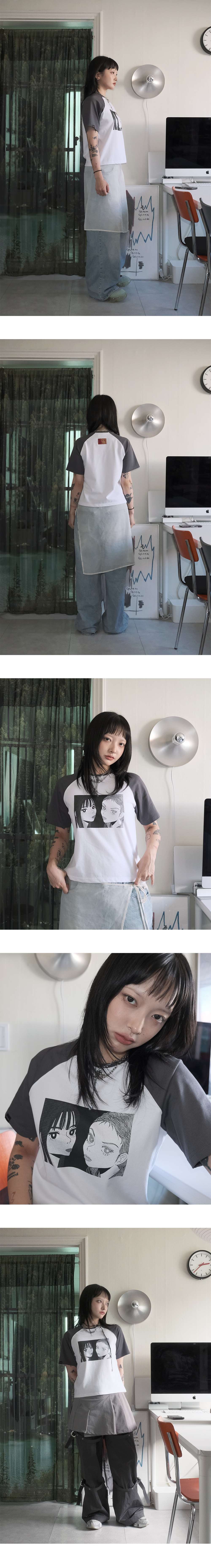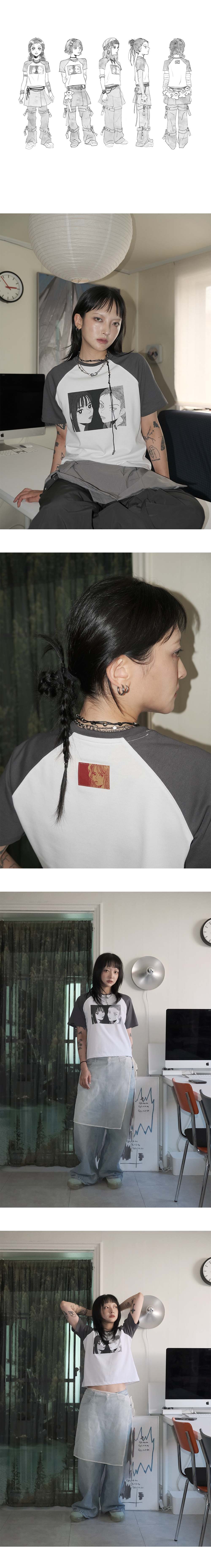 GODASHIN Two Girls Raglan T-Shirt Charcoal & White