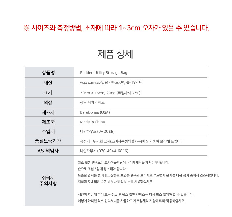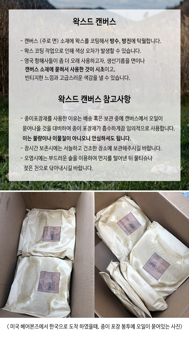 시간이 지남에 따라 또는 청소 후 왁스 칠한 캔버스는 다시 왁스를 칠해아 될 수 있습니다.