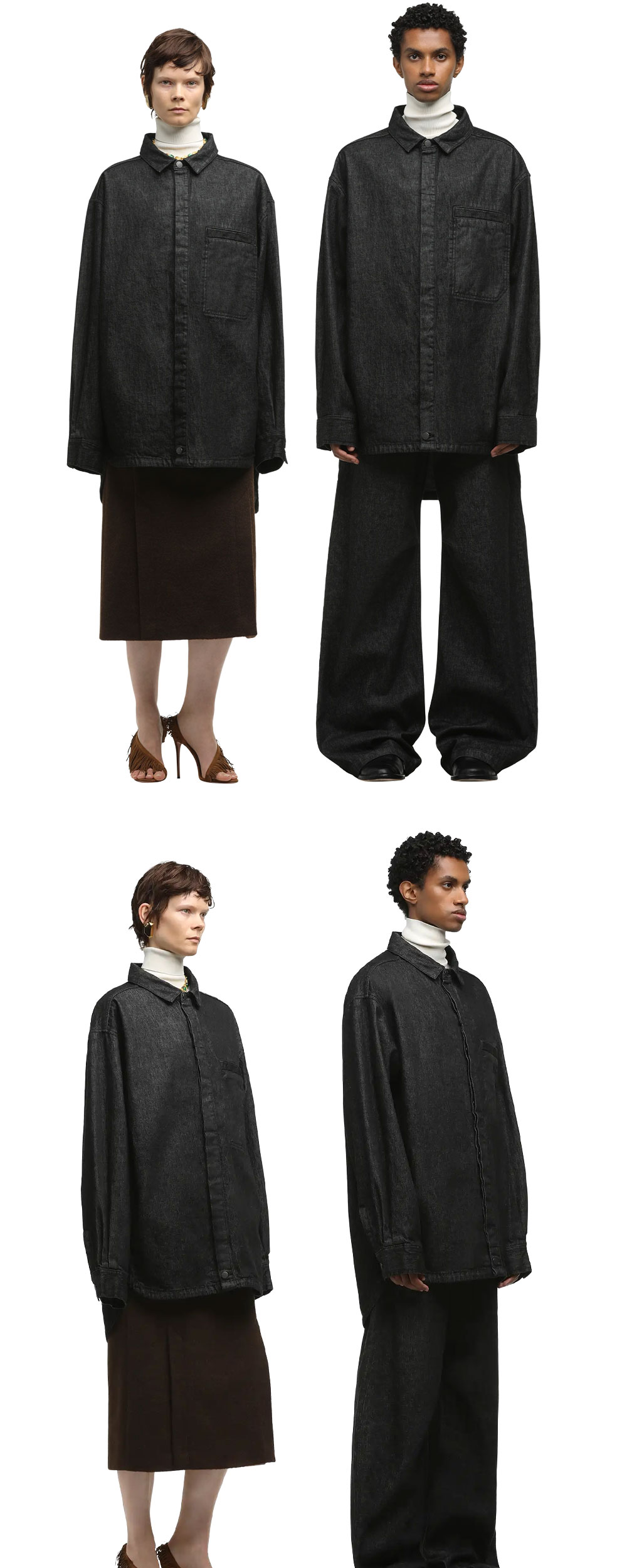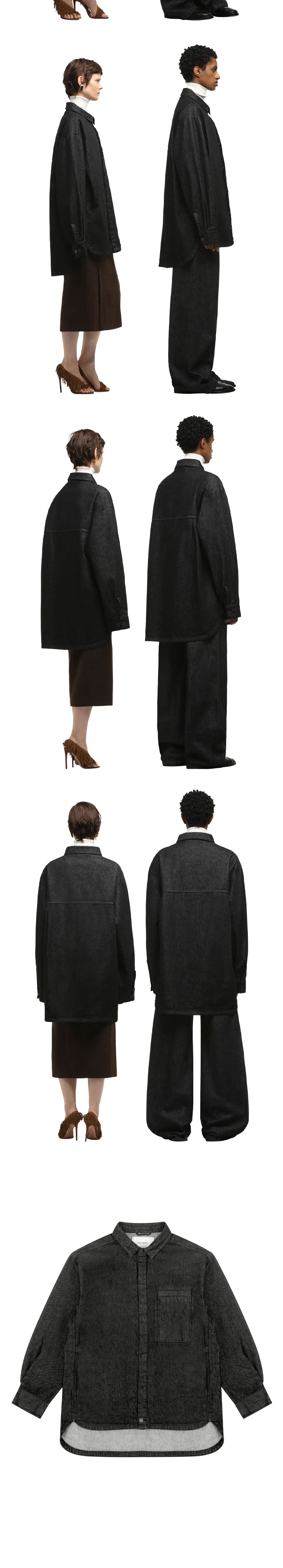오버사이즈 핏이 매력적인 엔타이어 스튜디오 허르큘린 셔츠 로우 블랙 컬러입니다. - 100% 코튼 - 센터 프론트 히든 버튼 클로저 - 오버사이즈 핏 - 롱 슬리브 - 전면 가슴 부분의 싱글 웰트 포켓 - 브랜드 하드웨어 사용 *좌측 모델은 175cm, M사이즈를 착용했으며, 우측 모델은 188cm, M사이즈를 착용했습니다.