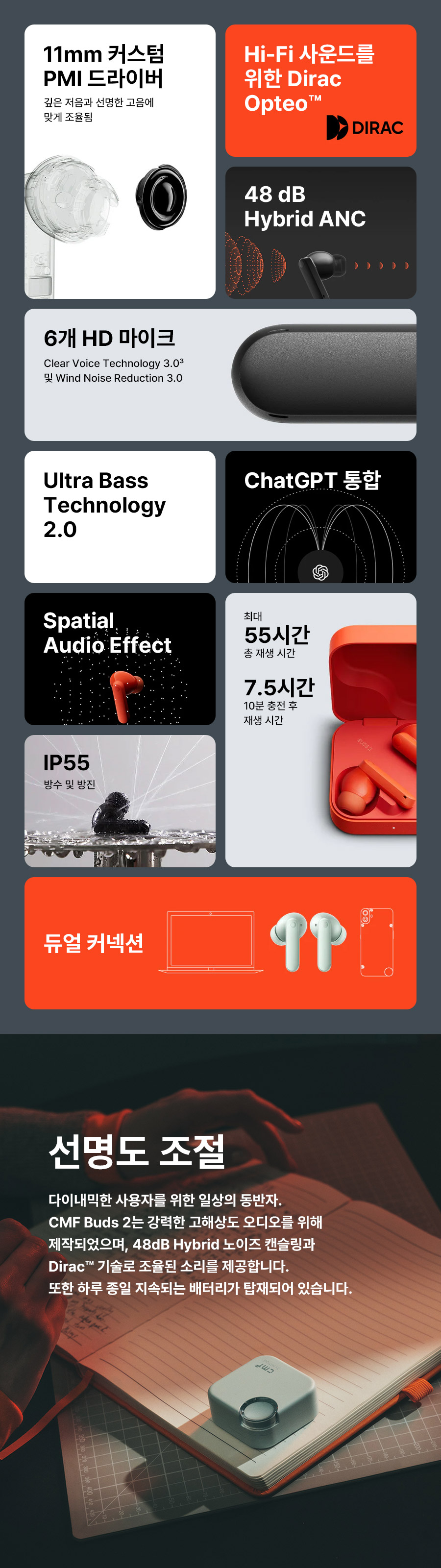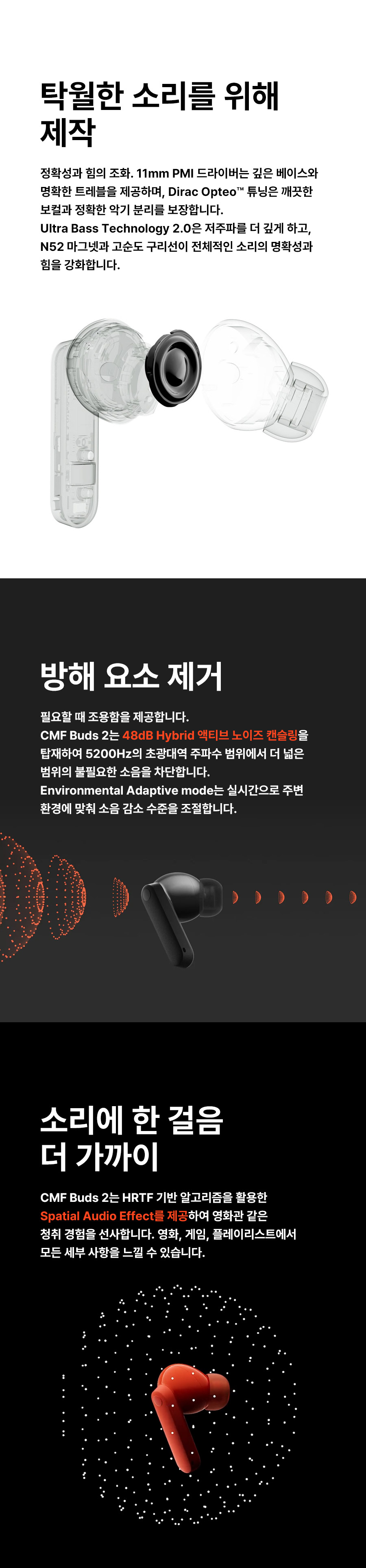 씨엠에프 바이 낫싱 버즈 2 블루투스 이어폰 다크 그레이