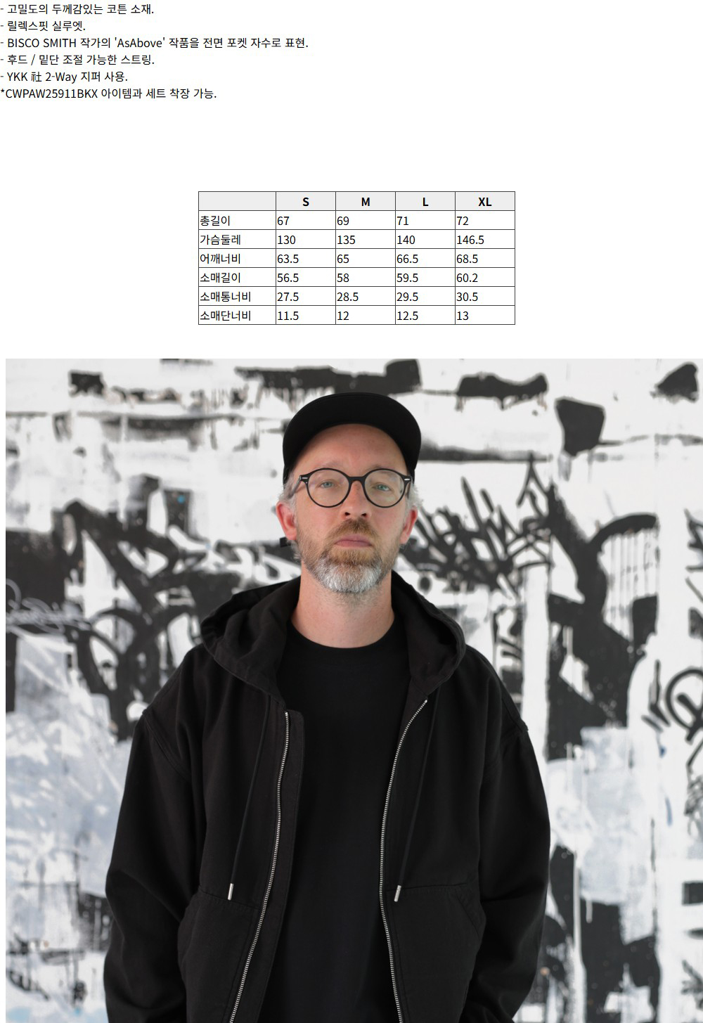 커스텀멜로우 BISCO SMITH 코튼 후드 집업 재킷 블랙