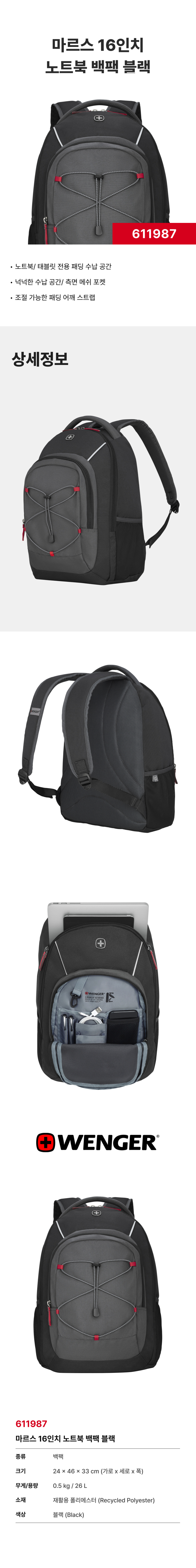 웽거 넥스트22 마스 16인치 노트북 백팩 블랙