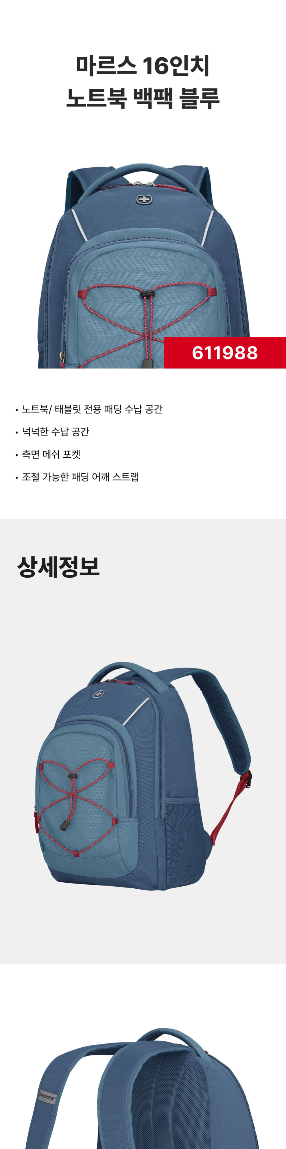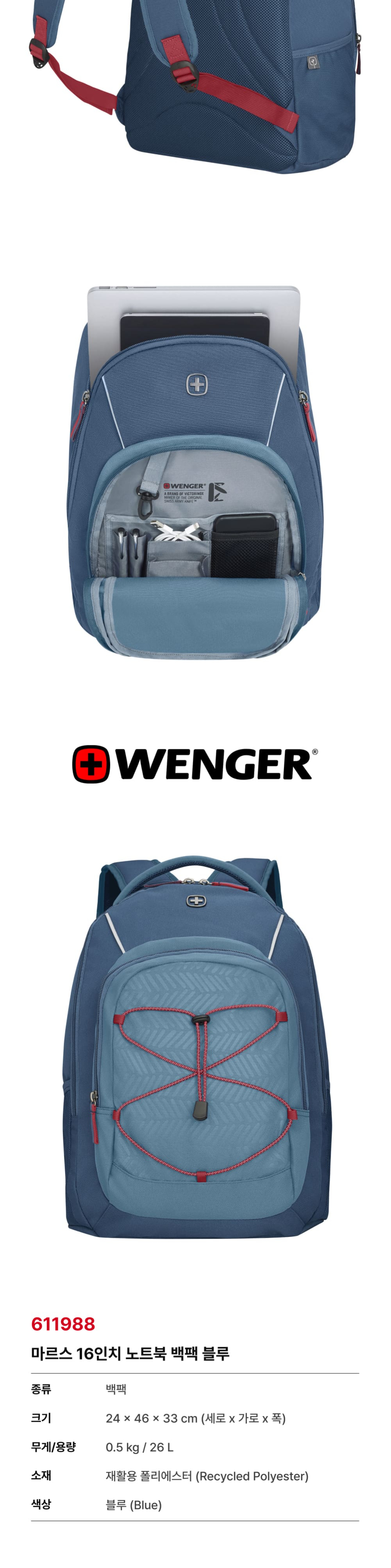 웽거 넥스트22 마스 16인치 노트북 백팩 블루