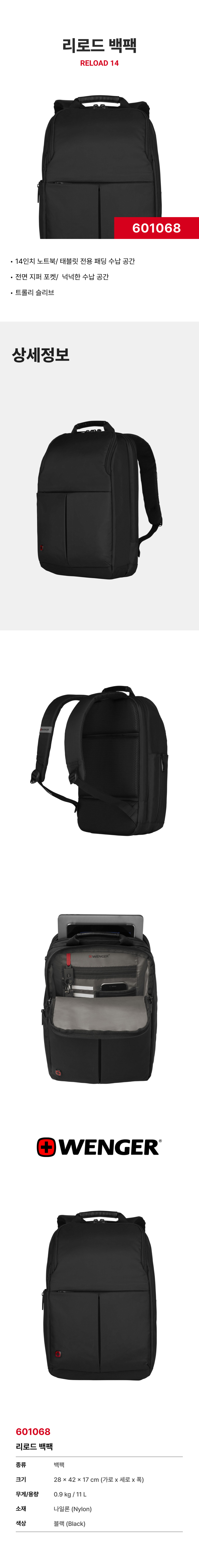 웽거 리로드 14인치 노트북 백팩 (태블릿 포켓 포함) 블랙