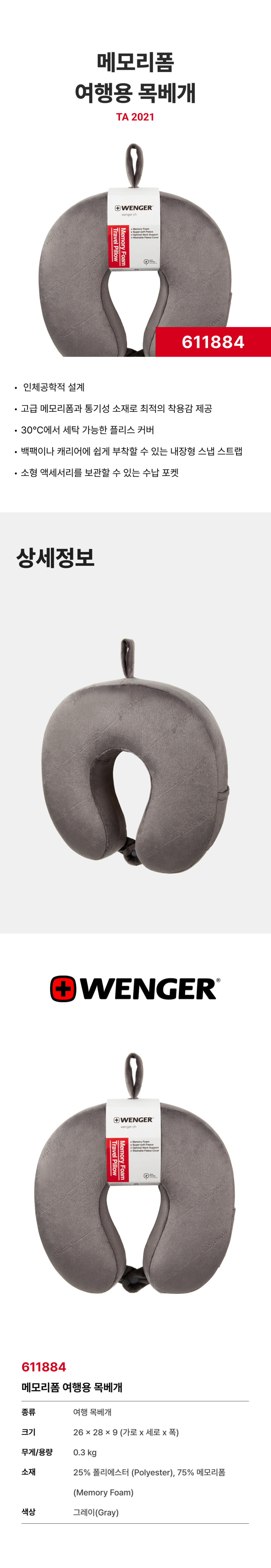 웽거 메모리폼 트래블 넥쿠션 그레이