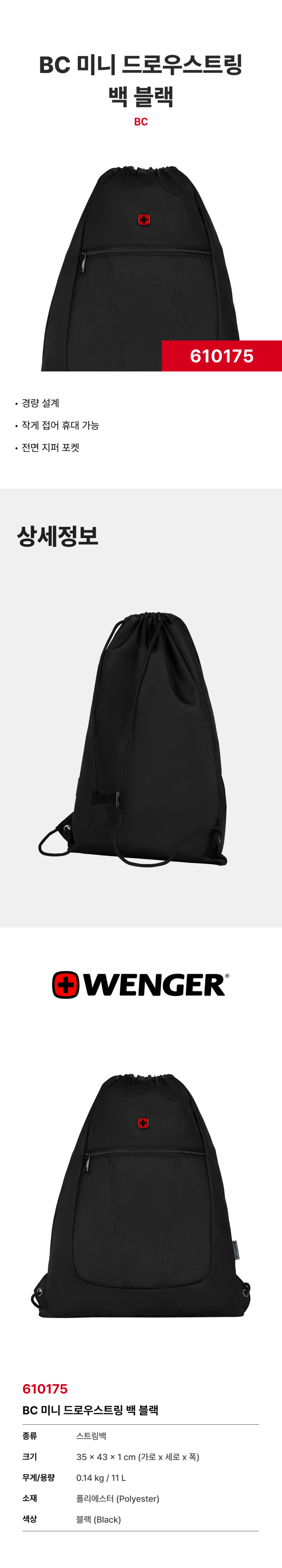 웽거 BC 미니 라이트웨이트 드로스트링 백 블랙