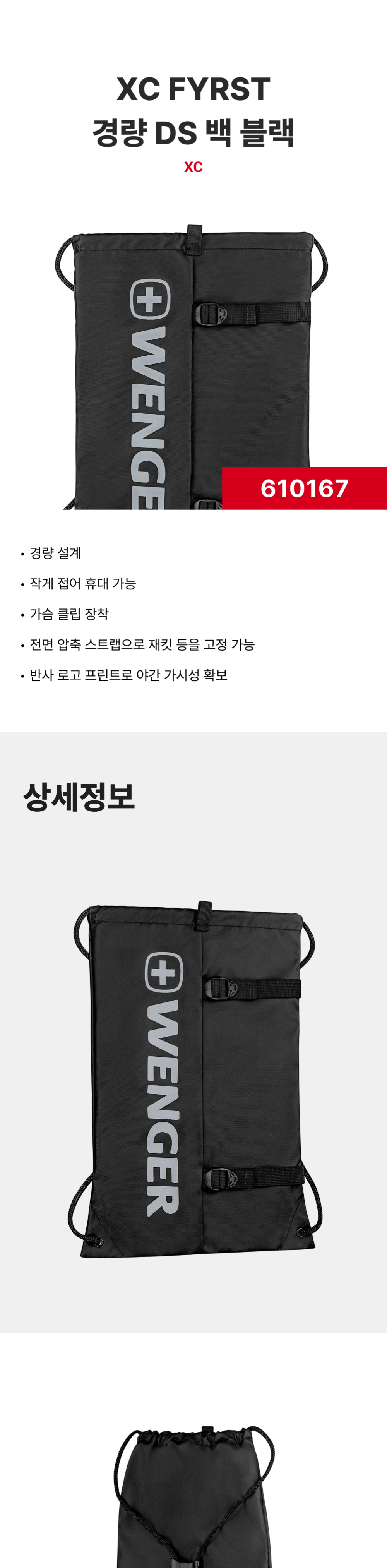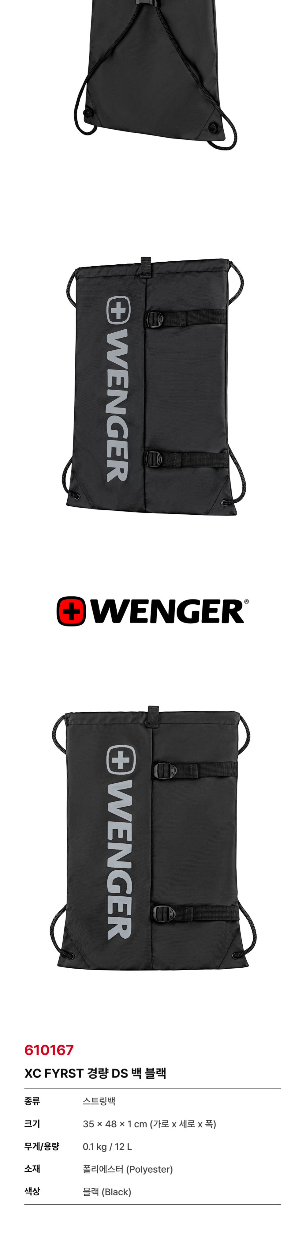 웽거 XC 퍼스트 라이트웨이트 드로스트링 백 블랙