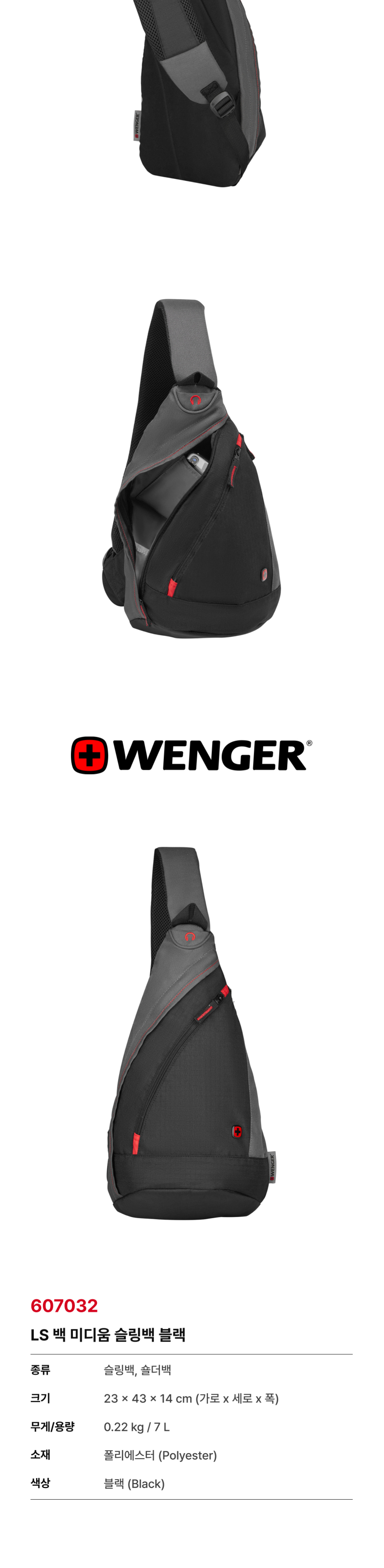 웽거 라이프스타일 백 미디엄 트리플 컴파트먼트 슬링백 블랙