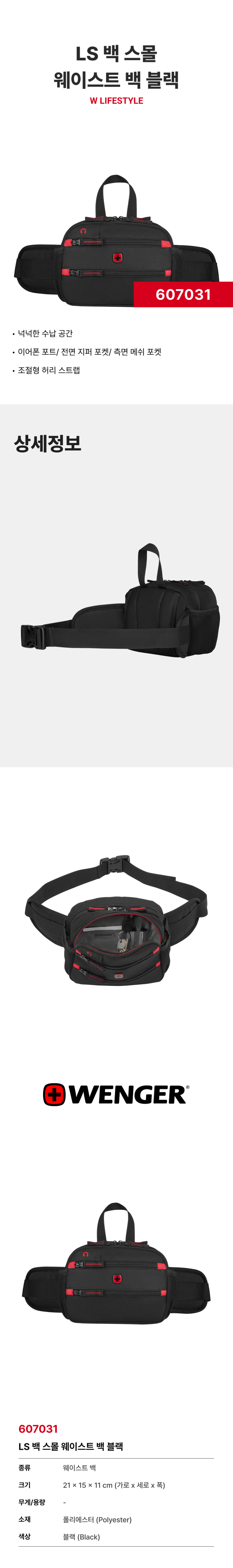 웽거 라이프스타일 백 스몰 더블 컴파트먼트 웨이스트 백 블랙