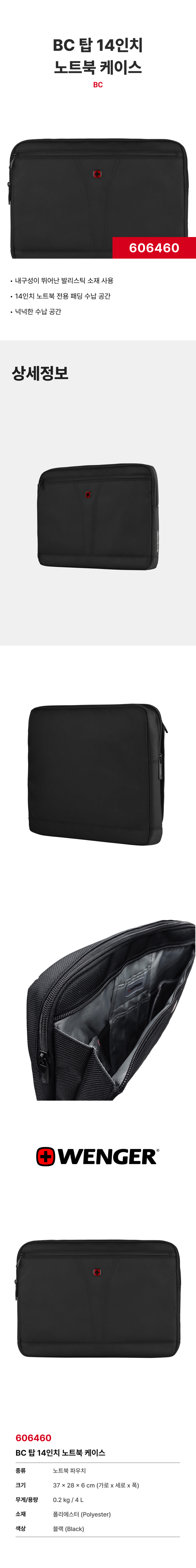 웽거 BC 탑 볼리스틱 노트북 슬리브 블랙
