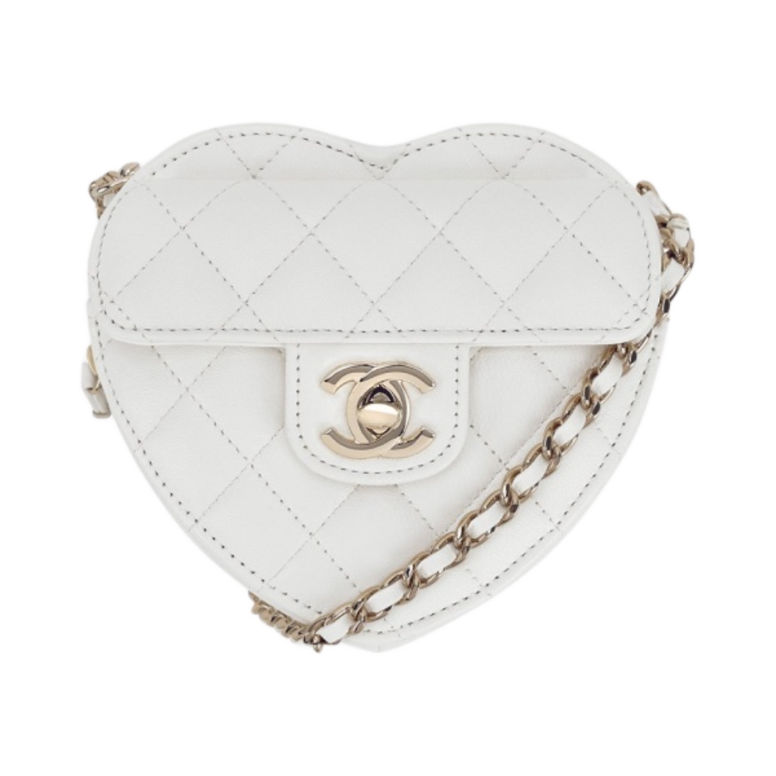 Chanel Heart Clutch with Chain Lambskin & Gold White