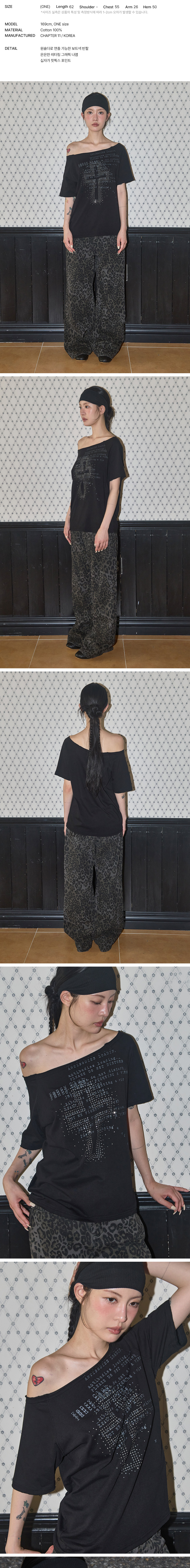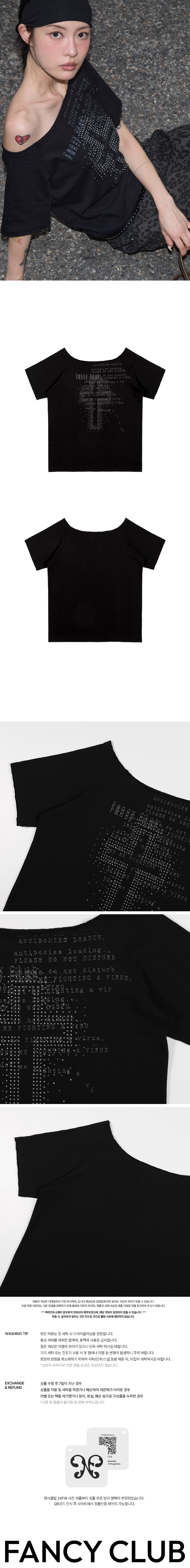 팬시클럽 디바인 크로스 원숄더 티 블랙