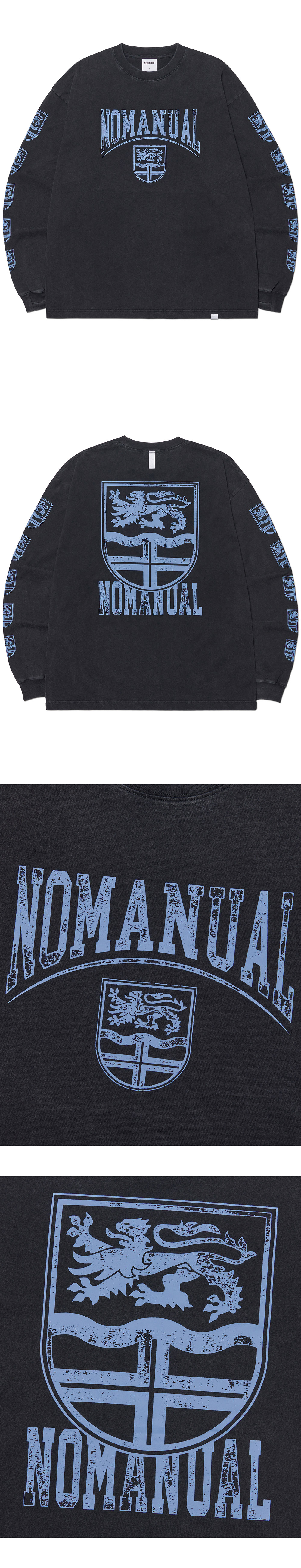 노매뉴얼 엠블럼 롱 슬리브 티 워시드 블랙