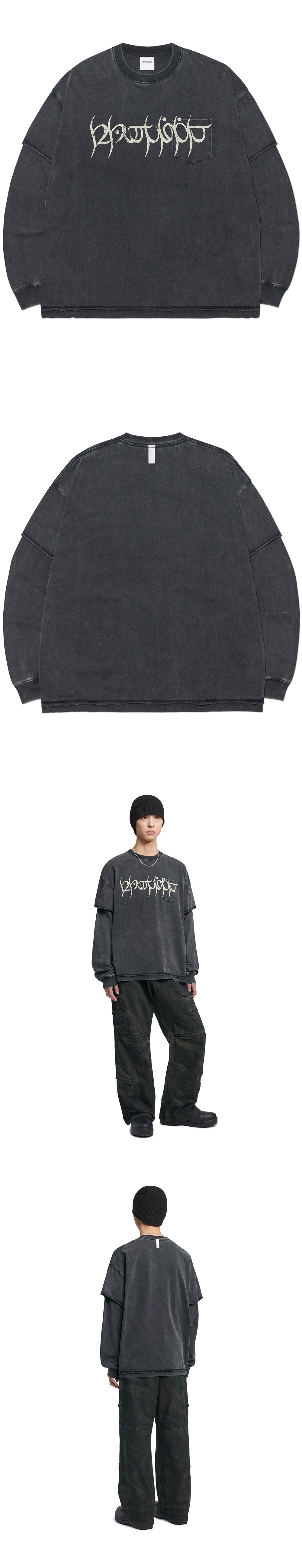 노매뉴얼 A.R 롱 슬리브 티 워시드 블랙