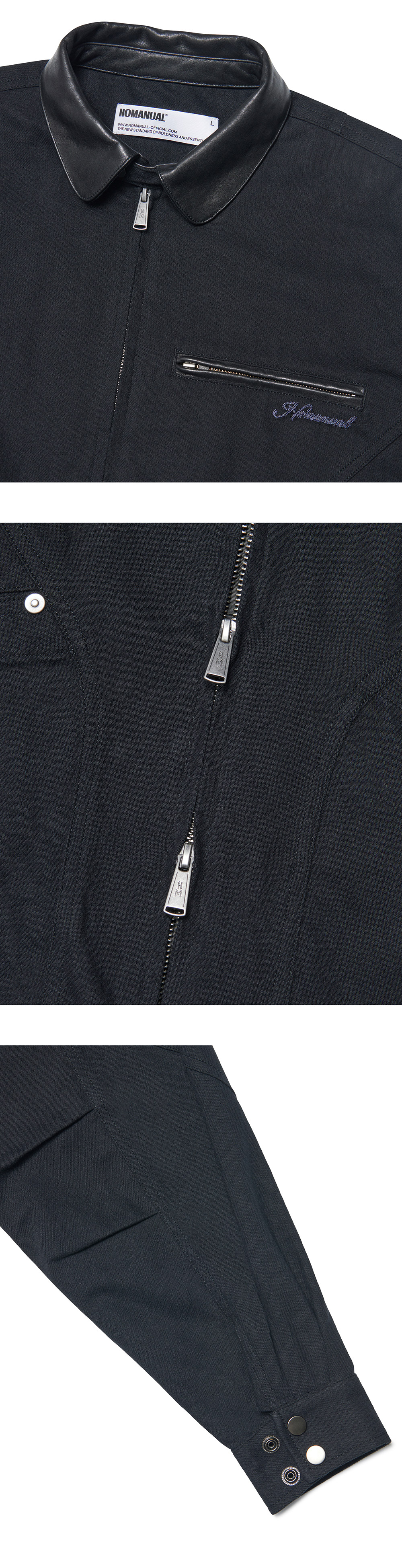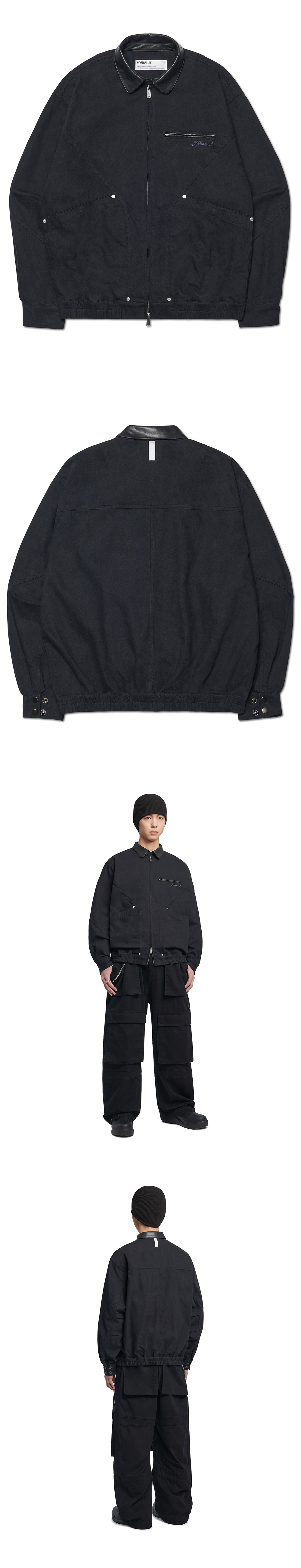 노매뉴얼 빈티지 레더 칼라 워크 자켓 워시드 블랙
