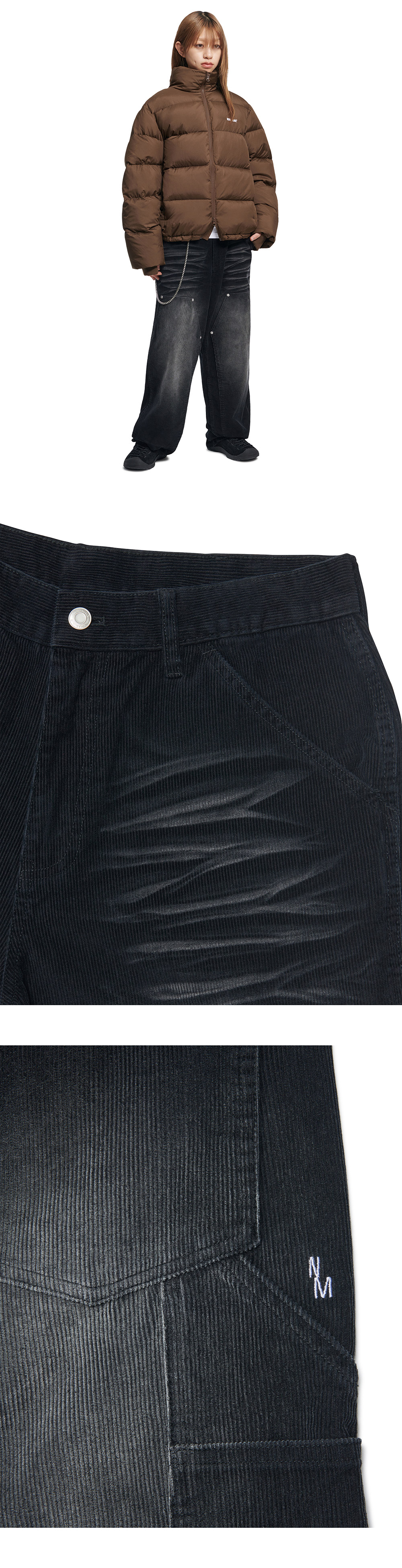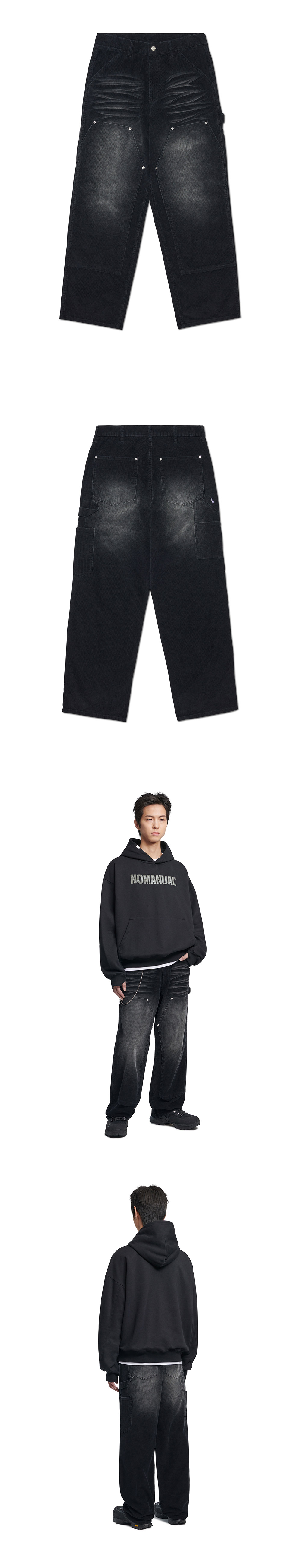 노매뉴얼 더블 니 코듀로이 팬츠 워시드 블랙