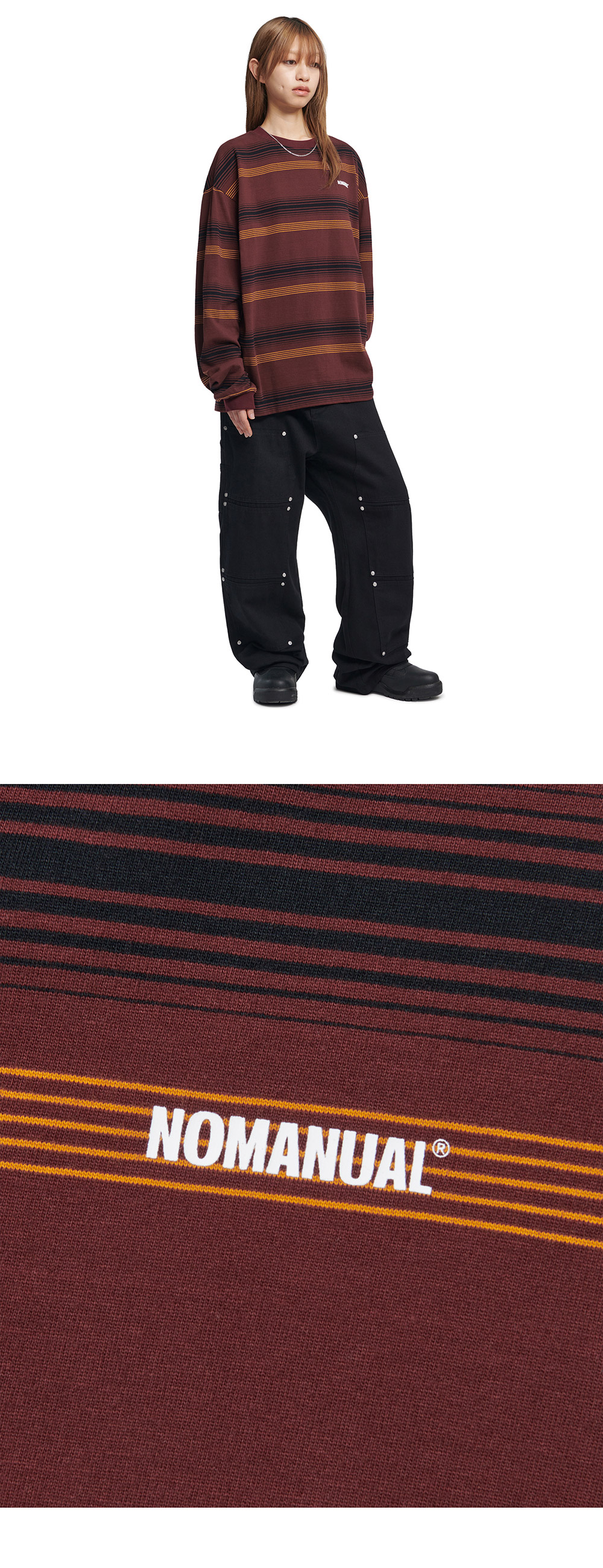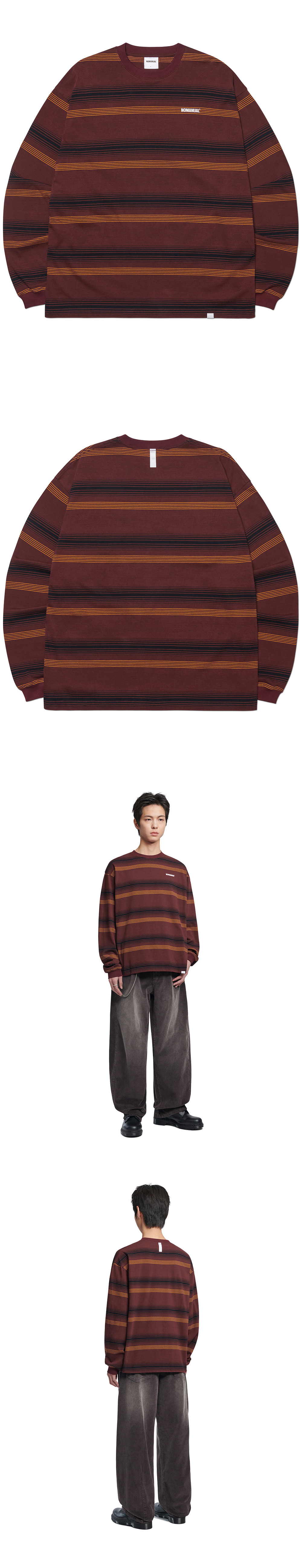 노매뉴얼 NM 스트라이프 롱 슬리브 티 버건디