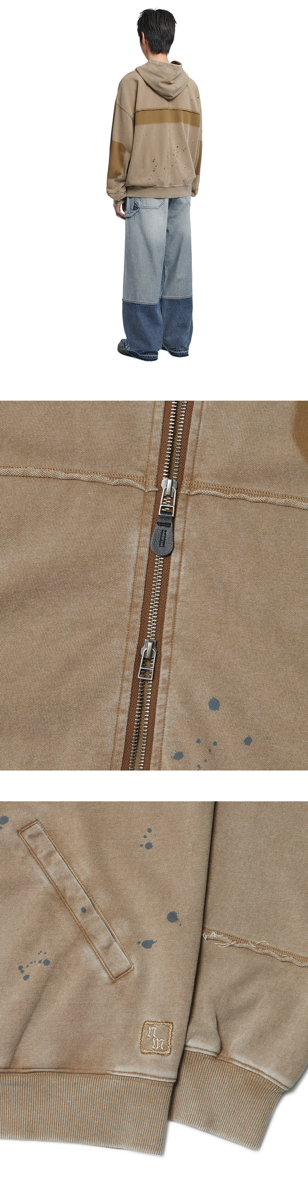 노매뉴얼 디태치드 패치 후디드 집업 워시드 브라운