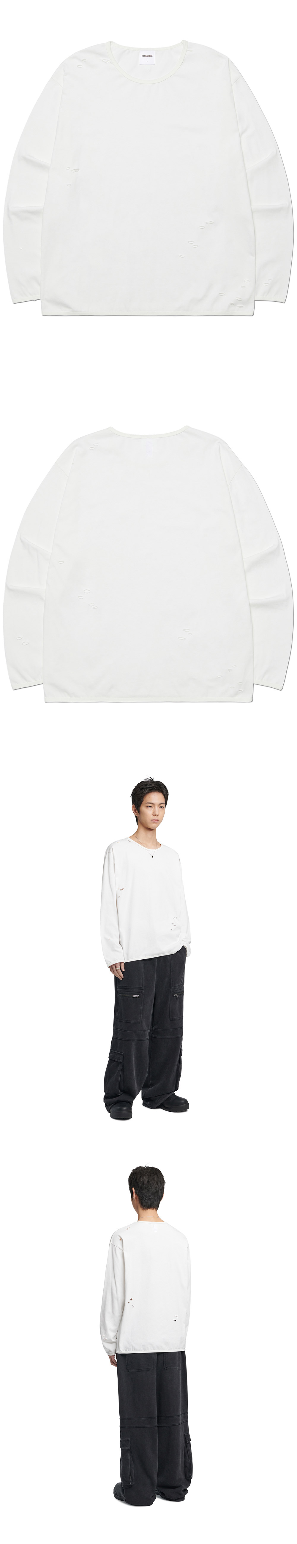 노매뉴얼 데미지드 롱 슬리브 티 화이트