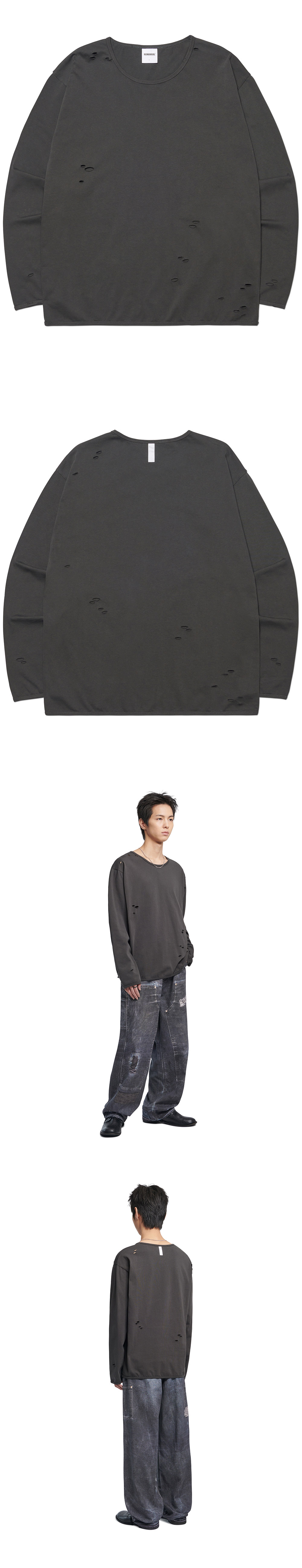 노매뉴얼 데미지드 롱 슬리브 티 차콜