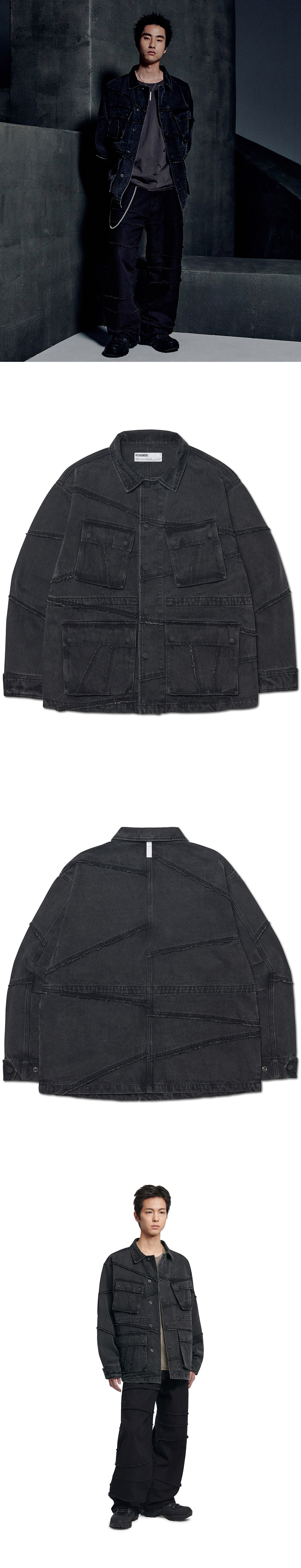 노매뉴얼 R.C 데님 BDU 자켓 워시드 블랙