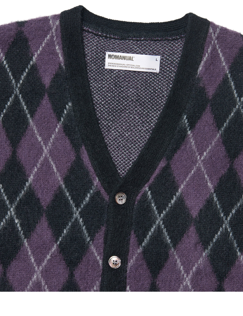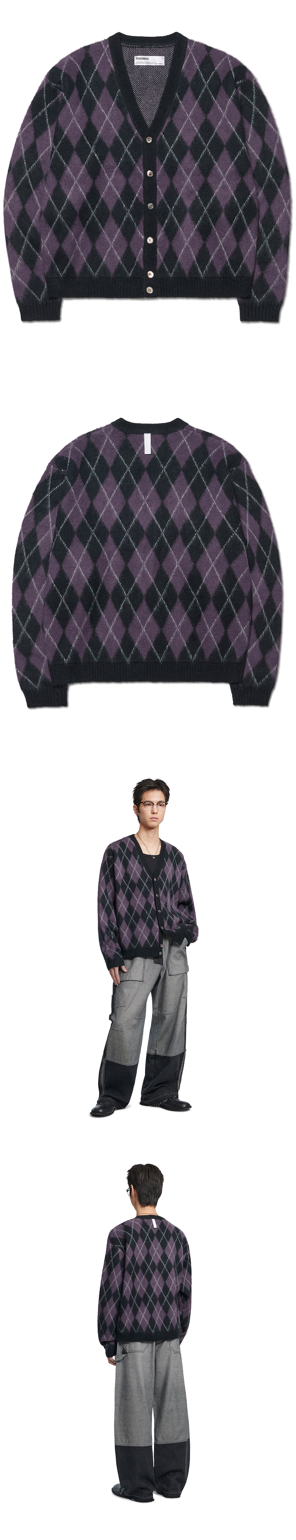 NOMANUAL Argyle Hairy Cardigan Purple