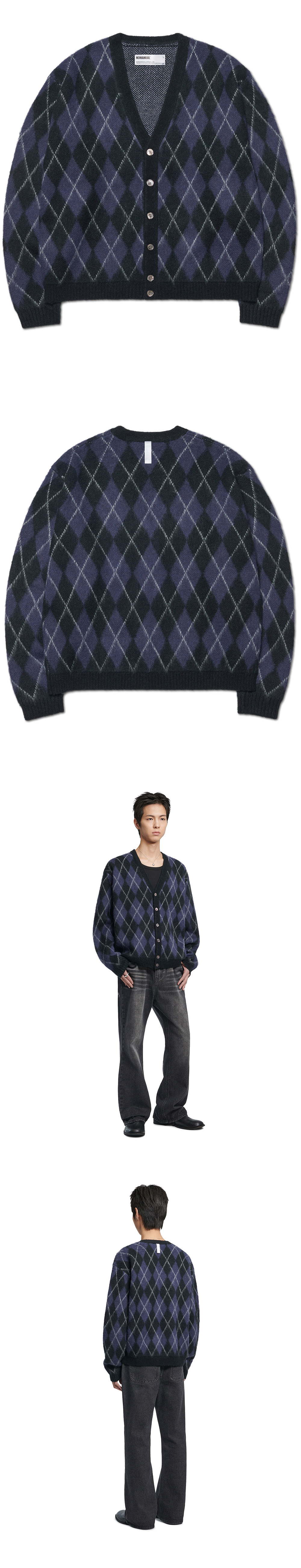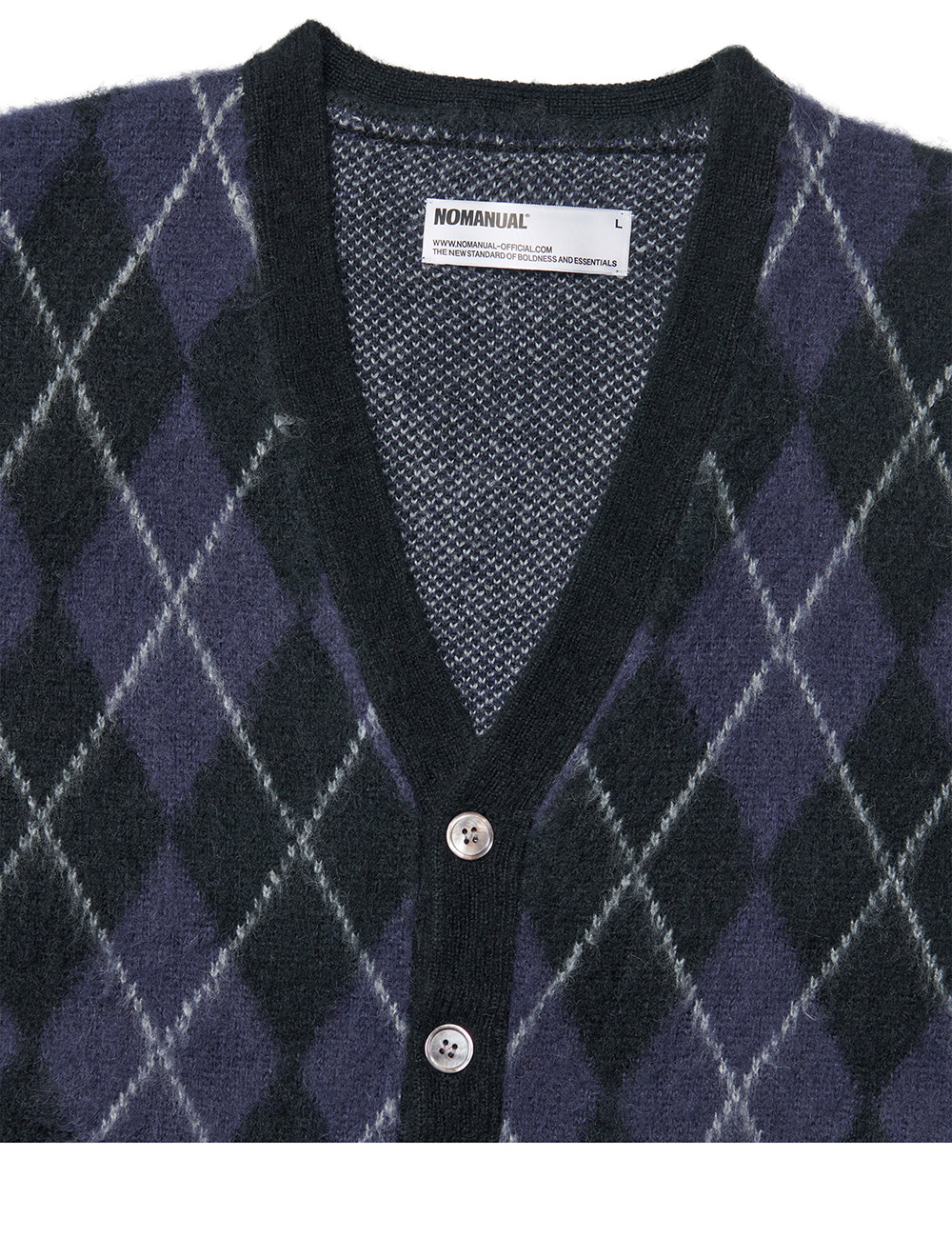 NOMANUAL Argyle Hairy Cardigan Dark Navy