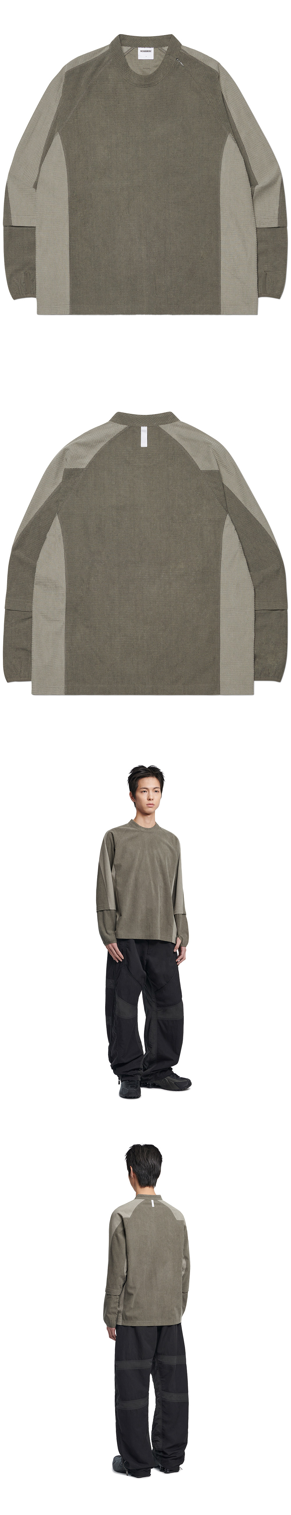 노매뉴얼 헤비 와플 롱 슬리브 티 차콜