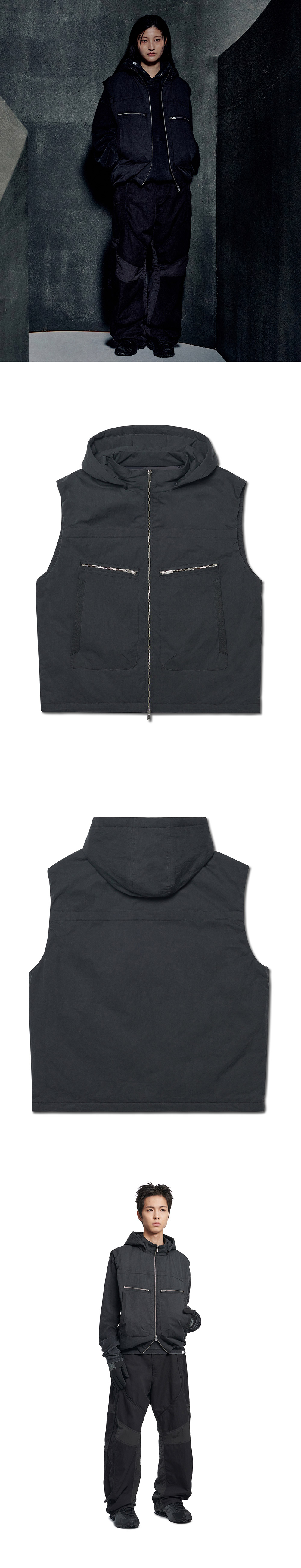 노매뉴얼 디태쳐블 후디드 베스트 블랙