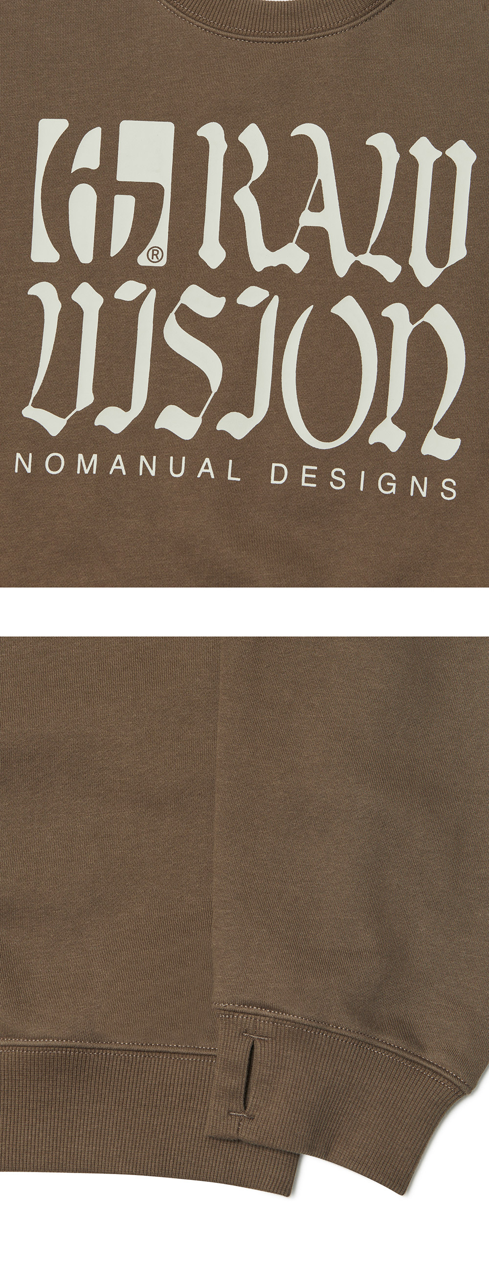 MODEL MAN : 180CM (L SIZE) COTTON 85% POLYESTER 15% THUMB HOLE DETAIL * 기모 가공된 제품입니다. * 방축가공이 완료된 원단이지만 기계 건조 시 건조기 기종이나 설정에 따라 수축과 변형이 일어날 수 있으니 자연건조 추천드리며 기계 건조로 인한 변형은 교환이나 환불 사유가 되지 않는 점 양해 부탁드립니다. * 두꺼운 폴리백 특성상 옷에 슬립제가 묻어나올 수 있습니다. 어두운 색 계열의 상품 구매시 보이는 슬립제는 불량의 사유가 아님을 알려드립니다.