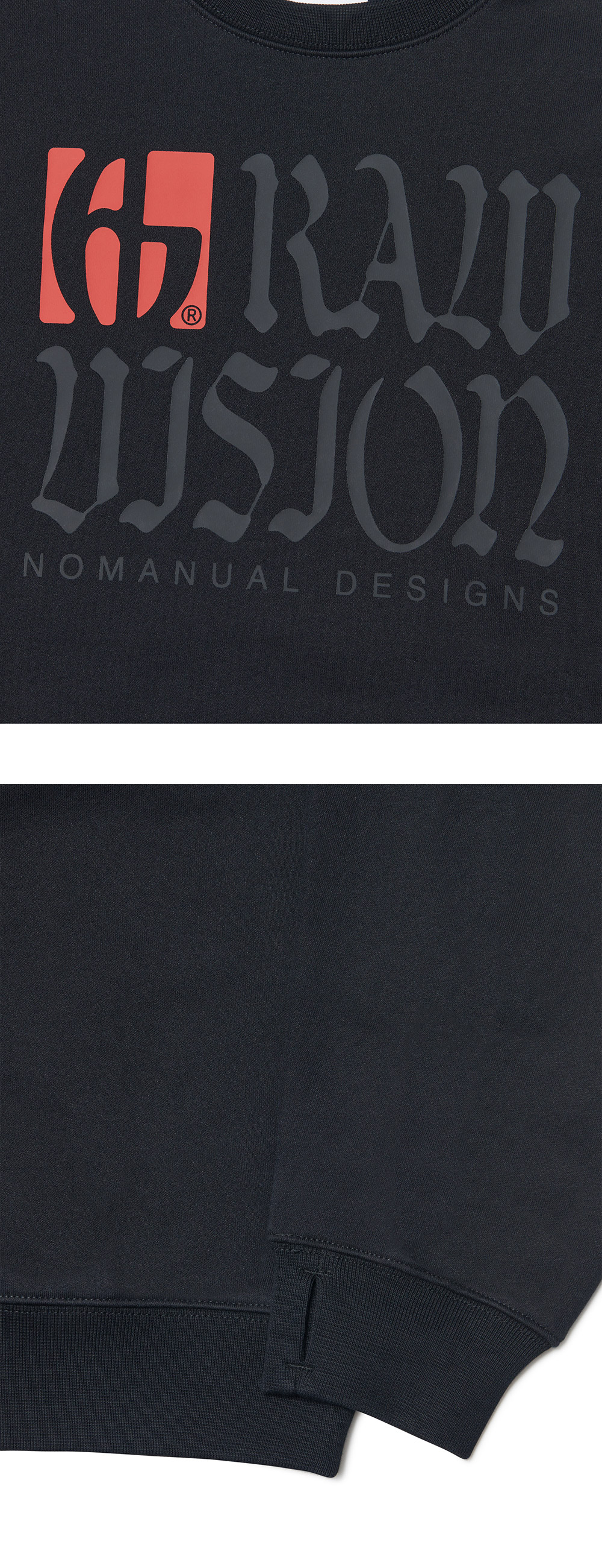 MODEL MAN : 180CM (L SIZE) COTTON 85% POLYESTER 15% THUMB HOLE DETAIL * 기모 가공된 제품입니다. * 방축가공이 완료된 원단이지만 기계 건조 시 건조기 기종이나 설정에 따라 수축과 변형이 일어날 수 있으니 자연건조 추천드리며 기계 건조로 인한 변형은 교환이나 환불 사유가 되지 않는 점 양해 부탁드립니다. * 두꺼운 폴리백 특성상 옷에 슬립제가 묻어나올 수 있습니다. 어두운 색 계열의 상품 구매시 보이는 슬립제는 불량의 사유가 아님을 알려드립니다.