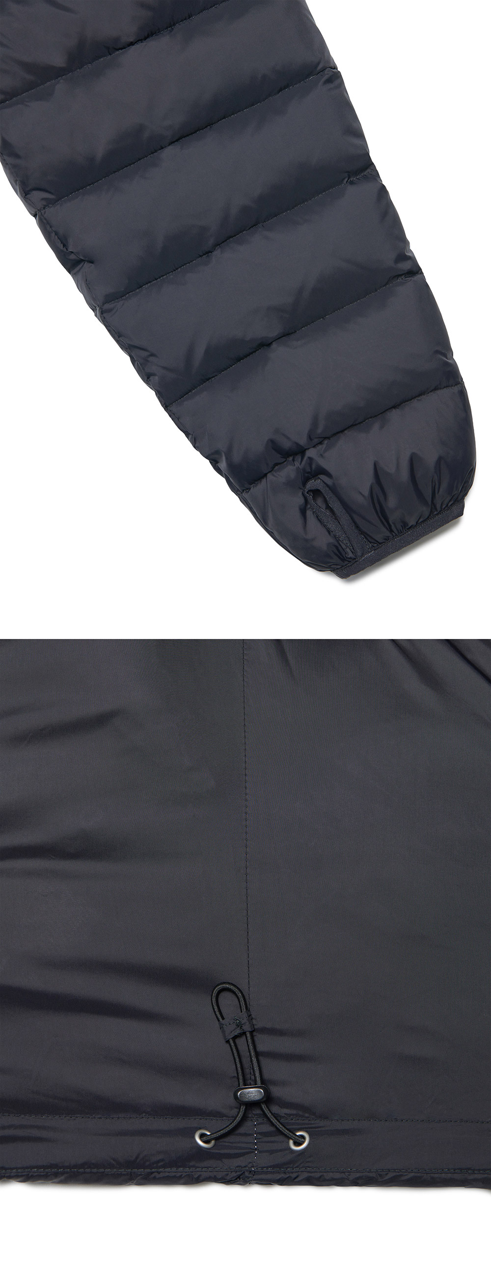 MODEL MAN : 180CM (L SIZE) WOMAN : 165CM (S SIZE) OUTSHELL : NYLON 100% LINING : NYLON 100% FILLING : RDS DUCK DOWN 75% RDS DUCK FEATHER 25% FILLING AMOUNT 240G 2WAY ZIPPER (YKK社) THUMB HOLE DETAIL WAIST STRING WATERPROOFING FOR DAILY USE * 제품 수령 직후에는 필파워가 약할 수 있습니다. 하루 정도 옷걸이에 걸어두시면 복원됩니다. * 두꺼운 폴리백 특성상 옷에 슬립제가 묻어나올 수 있습니다. 어두운 색 계열의 상품 구매시 보이는 슬립제는 불량의 사유가 아님을 알려드립니다.