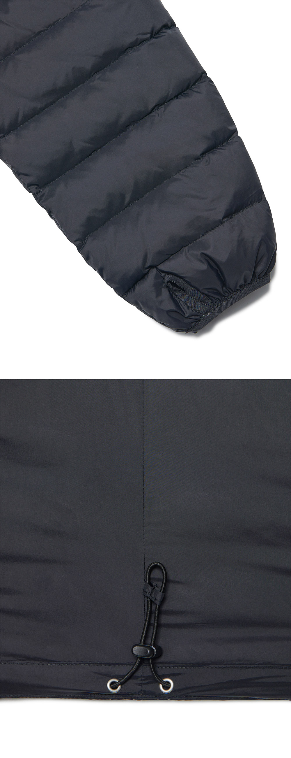 MODEL MAN : 180CM (L SIZE) WOMAN : 165CM (S SIZE) OUTSHELL : NYLON 100% LINING : NYLON 100% FILLING : RDS DUCK DOWN 75% RDS DUCK FEATHER 25% FILLING AMOUNT 220G 2WAY ZIPPER (YKK社) THUMB HOLE DETAIL WAIST STRING WATERPROOFING FOR DAILY USE * 제품 수령 직후에는 필파워가 약할 수 있습니다. 하루 정도 옷걸이에 걸어두시면 복원됩니다. * 두꺼운 폴리백 특성상 옷에 슬립제가 묻어나올 수 있습니다. 어두운 색 계열의 상품 구매시 보이는 슬립제는 불량의 사유가 아님을 알려드립니다.