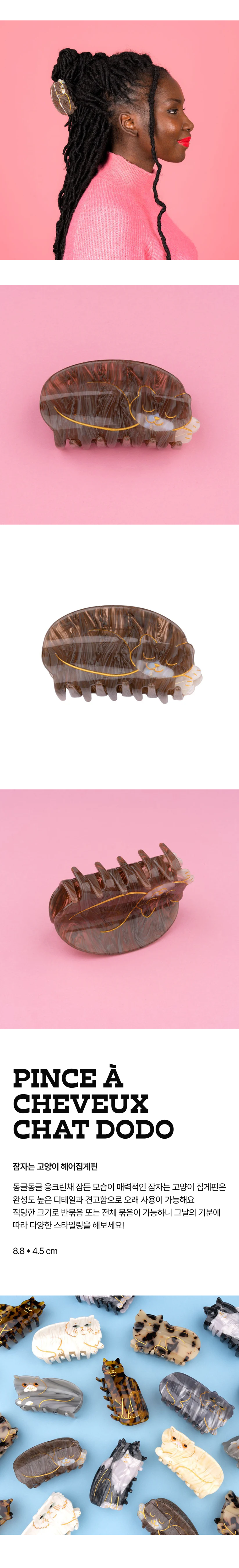 쿠쿠수제뜨 잠자는 고양이 헤어집게핀