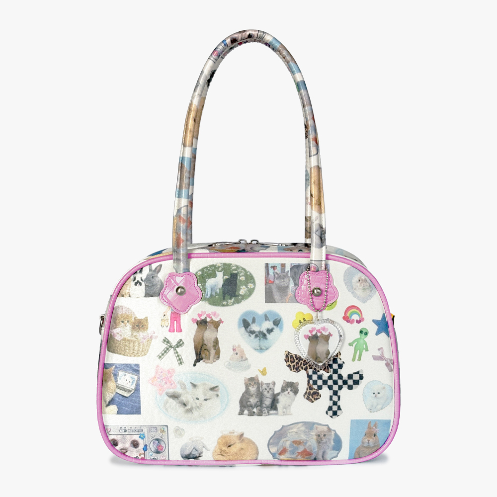 COLLAGE TOTE BAG "Pink" ** KREAM EXCLUSIVE ** [One Size] 31cm x 21cm x 9cm (1 out Pocket / 1 inner pocket) [Material] Poly & Cotton mixed. Vegan Leather. Metal. Made in Korea. 언스테디마켓 콜라쥬 토트백 핑크에디션 크림 익스클루시브 아이템으로 출시 되었습니다. 한정수량으로 제작되었습니다. 빈티지하고 치키한 디자인에 적당한 크기와 가벼운 무게로 여름시즌 데일리백으로 추천드립니다. *콜라주 토트 백 구매 시, 하트키링(랜덤)을 선착순으로 드립니다.