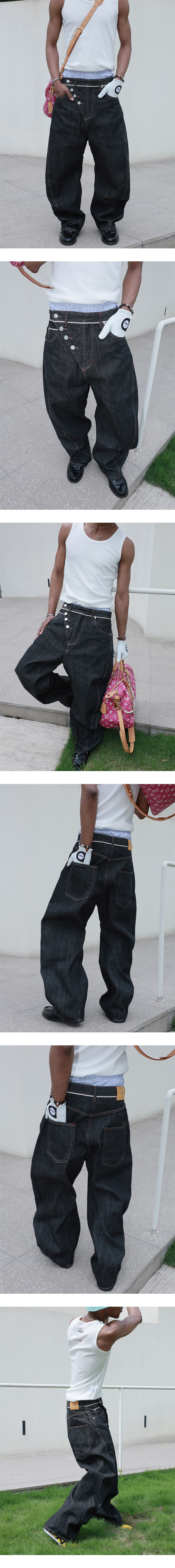 스팁 Rebellious 슬랜티드 버튼 샐비지 데님