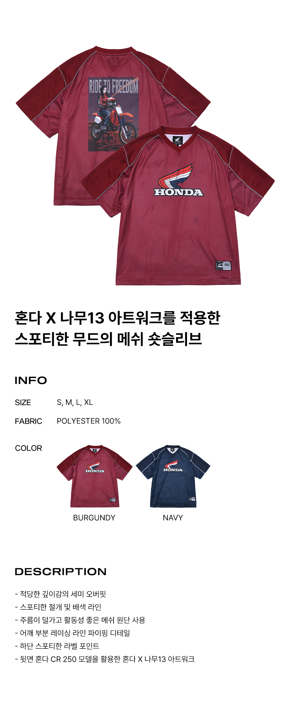 [KREAM 단독] 혼다 X 나무13 CR 250 박스 메쉬 숏 슬리브 버건디