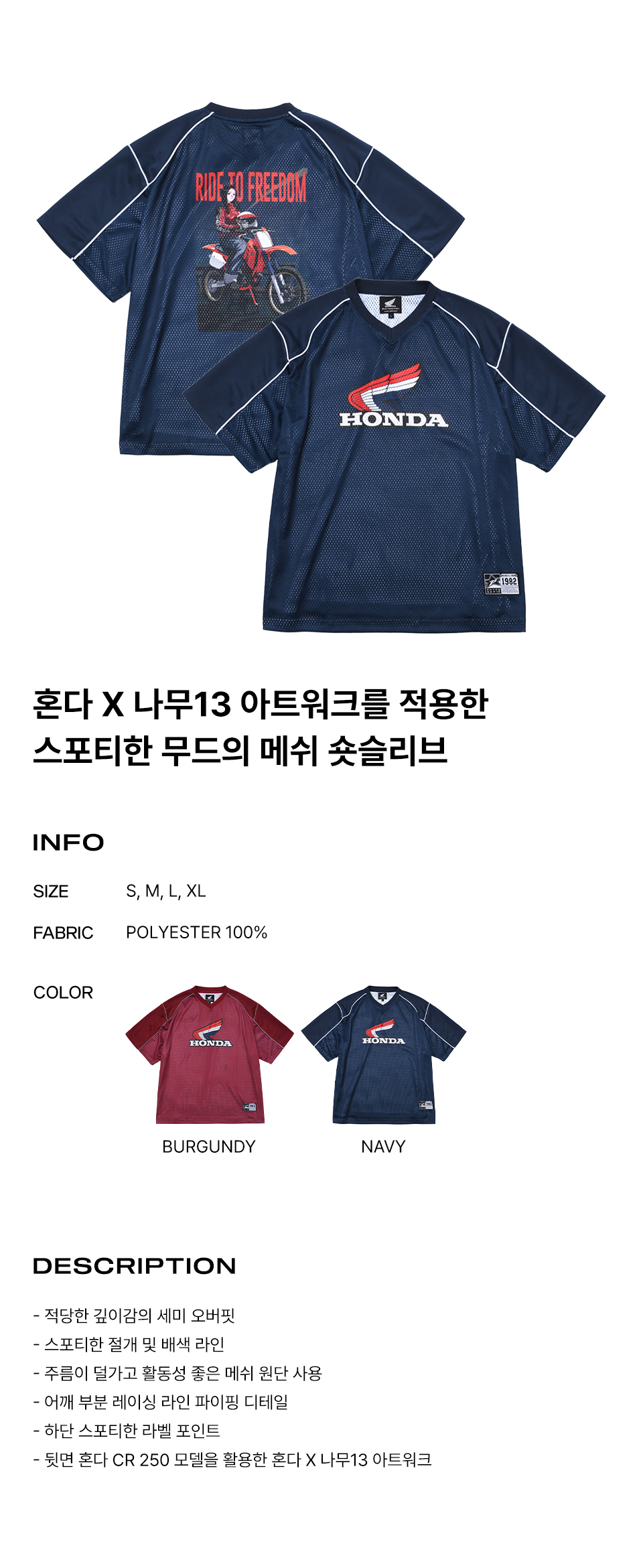 [KREAM 단독] 혼다 X 나무13 CR 250 박스 메쉬 숏 슬리브 네이비