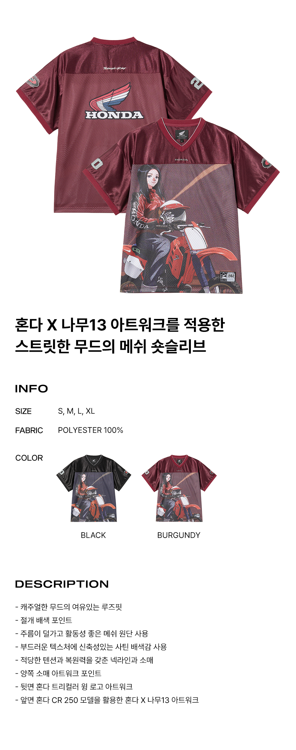 [KREAM 단독] 혼다 X 나무13 CR 250 메쉬 숏 슬리브 버건디