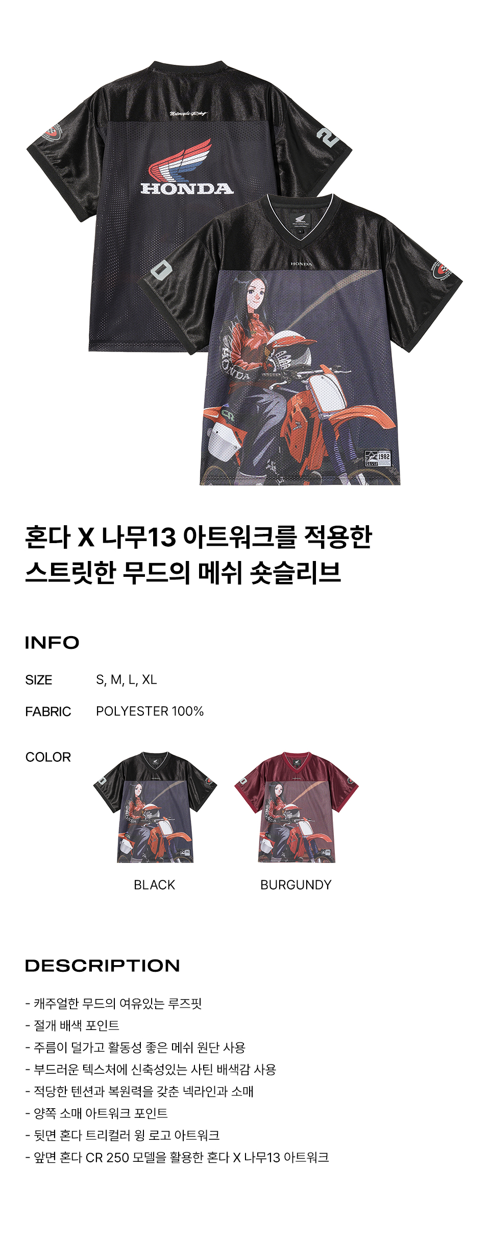 [KREAM 단독] 혼다 X 나무13 CR 250 메쉬 숏 슬리브 블랙