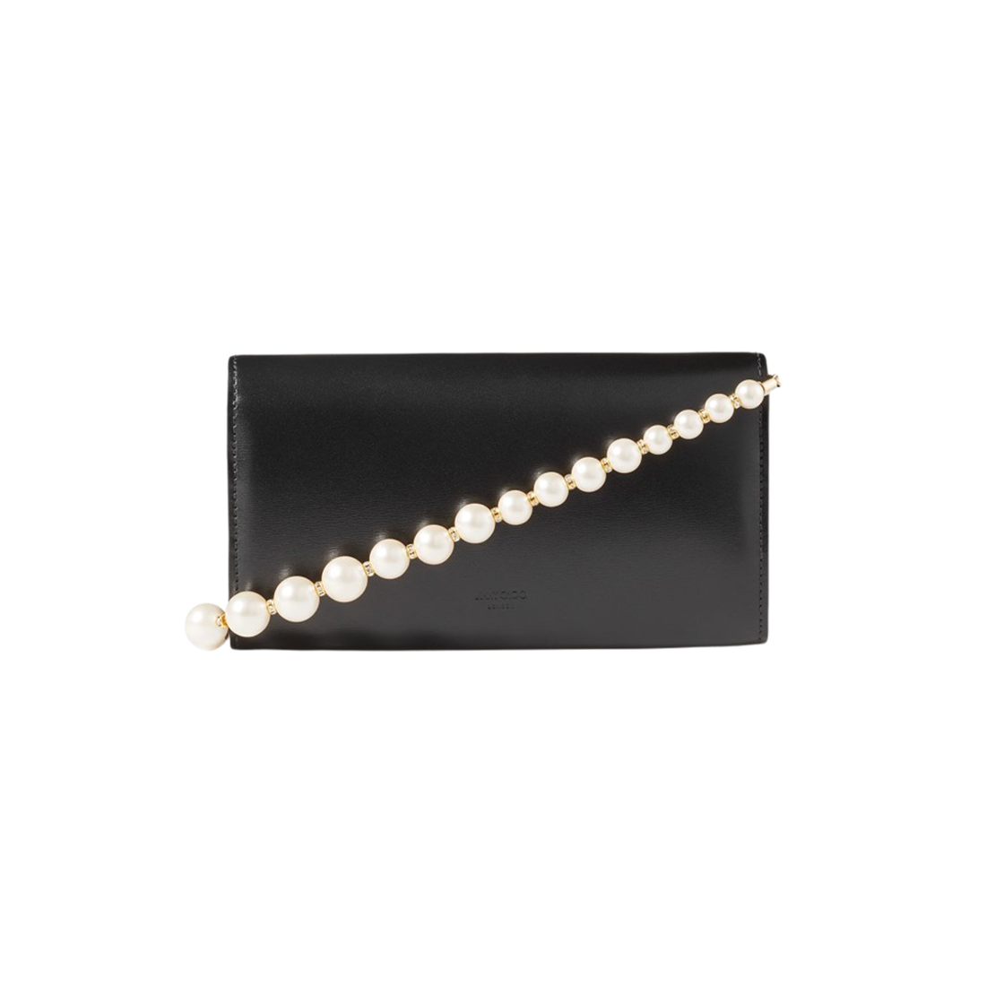 Jimmy Choo Avenue Leather Wallet with Chain Pearl Strap Black Light Gold