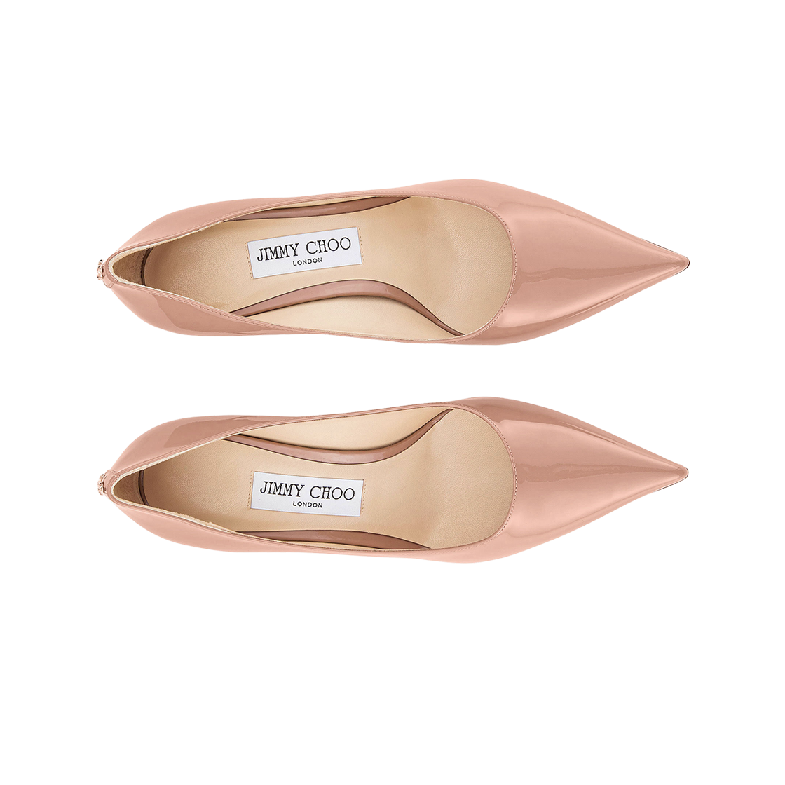 (W) Jimmy Choo Love 65 JC Emblem Patent Leather Pointed Pumps Ballet Pink