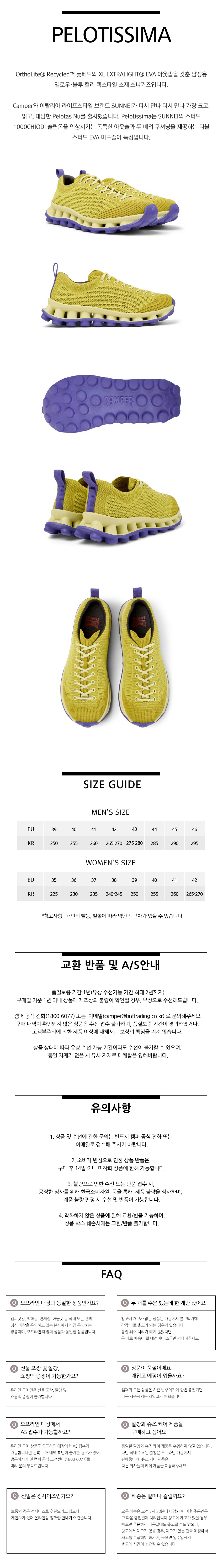 캠퍼 남성 펠로티시마 스니커즈 옐로우
