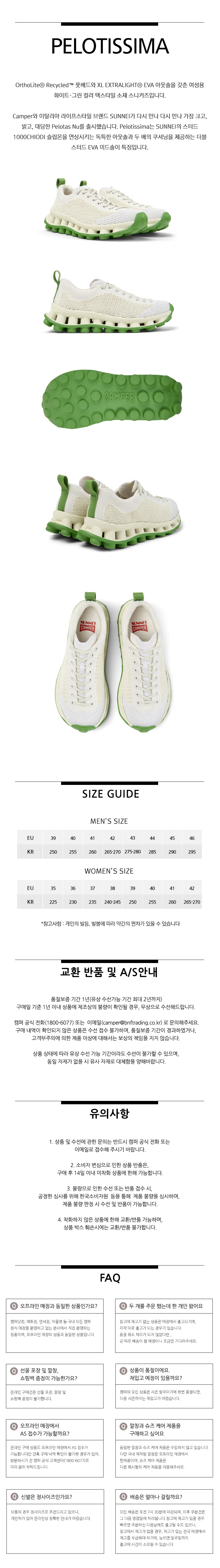 캠퍼 여성 펠로티시마 스니커즈 아이보리