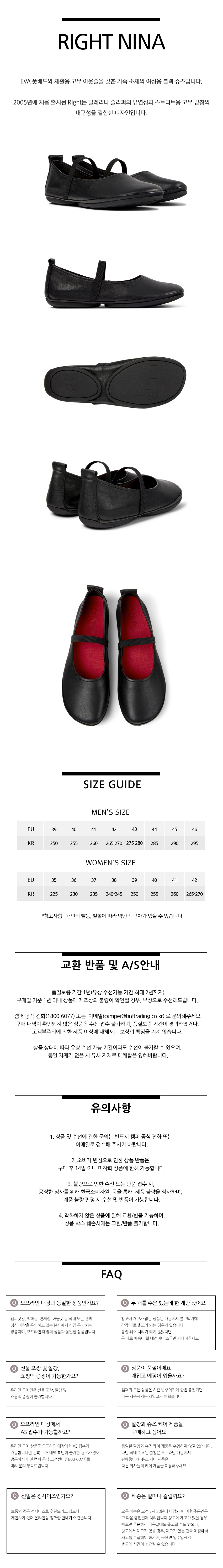 캠퍼 여성 라이트 니나 플랫슈즈 블랙