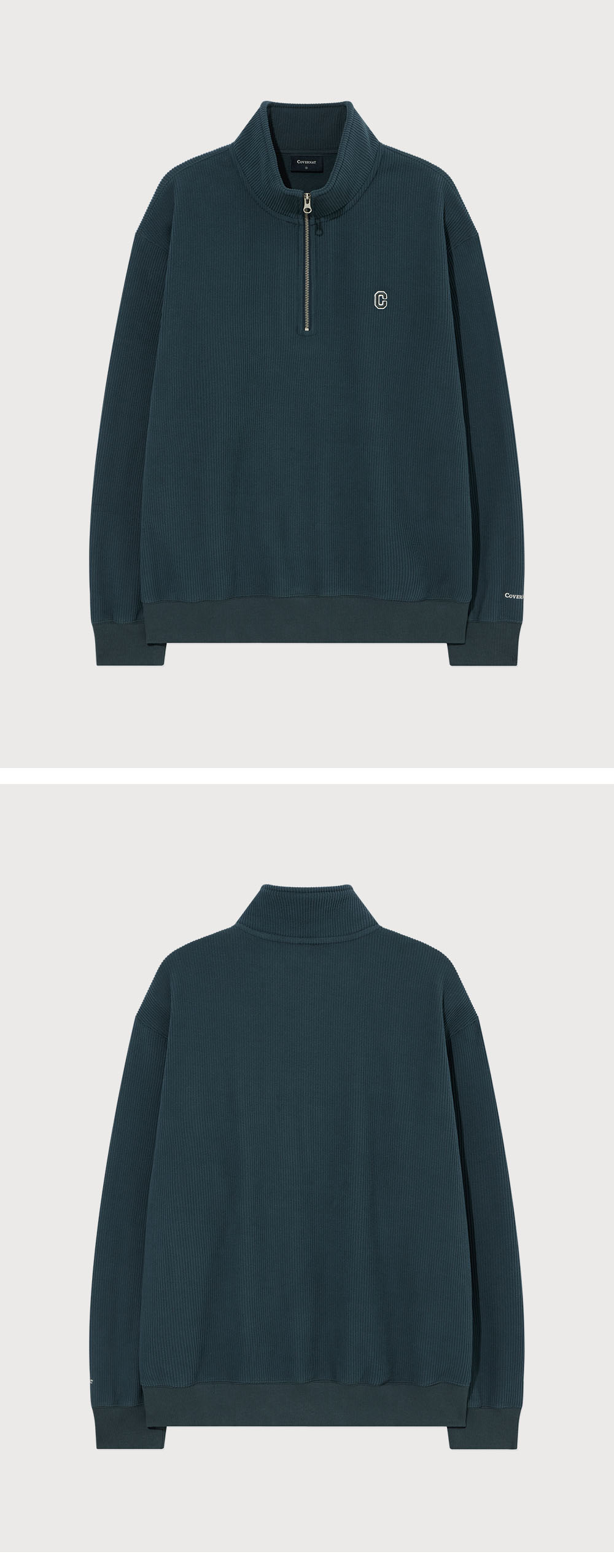 커버낫 스몰 C 로고 코듀로이 하프집업 틸 블루