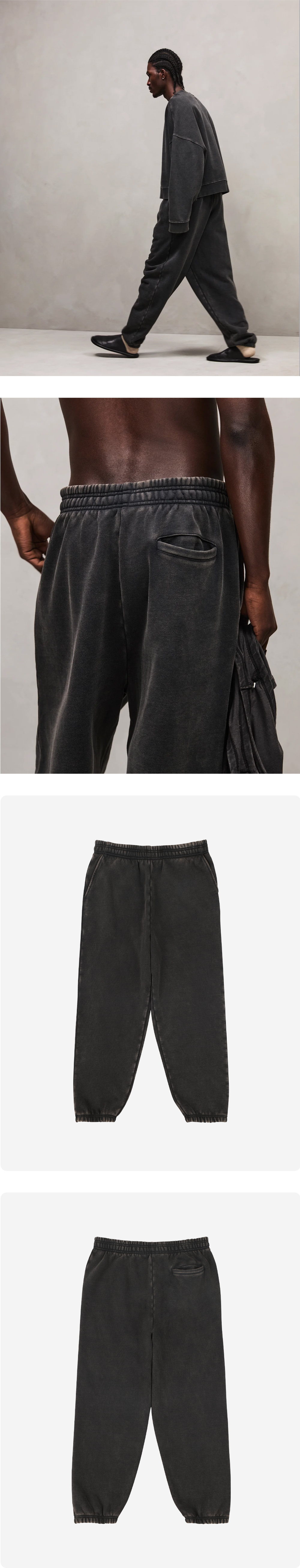 빈티지한 무드가 느껴지는 엔타이어스튜디오 스탠다드 스웨트 워시드 블랙입니다. - 100% 오가닉 코튼 브러시드 백 플리스 소재 - 중량감 있는 510gsm 원단 - 가먼트 다잉(의류 완성 후 염색)과 엔자임 워싱 처리로 인해 색상에 약간의 차이가 있을 수 있음 - 허리 포켓 - 뒷면 포켓 - 코튼 드로우코드가 달린 밴딩 처리된 허리 - 남녀 공용 사이즈